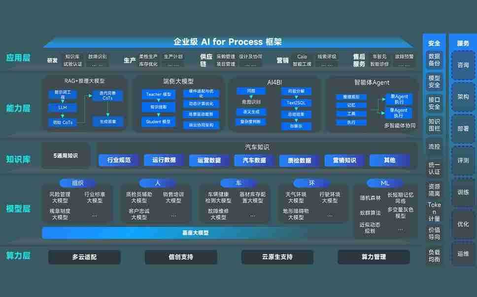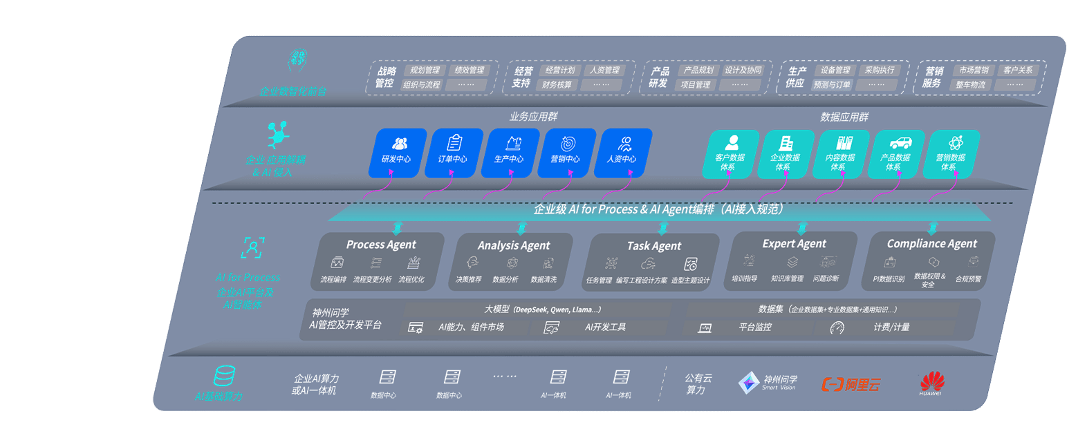 尊龙z6问学智车解决方案是一套基于AI技术的汽车行业智能化系统,,覆盖从底层算力到顶层AI应用的全栈方案。。。方案由算力层、、、模型层和应用层组成:算力层,,,,方案支持多种一体机配置,,,,具备云端灵活部署、、、多云适配以及动态优化计算资源的能力;模型层,,,,尊龙z6问学平台版提供了企业级AI应用一站式构建与管理平台,,,支持基于后训练强化技术的汽车企业专属模型的训练、、评测和运营;应用层,,尊龙z6问学DeepSeek版提供包括超级员工、、智能招采、、、智能营销、、智能客服、、、、AI for BI等一系列解决方案,,,可助力汽车行业实现数字化转型,,,让管理更智能、、、、响应更敏捷。。