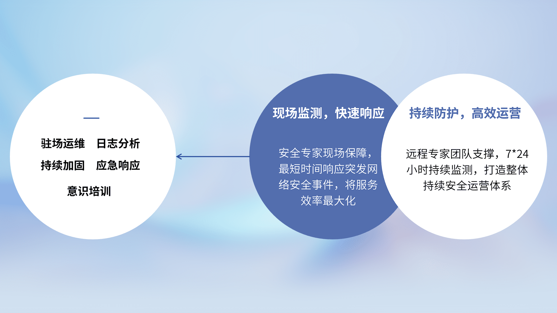 针对客户行业特性,,,,提供专属的一站式安全管理服务,,,,帮助客户全面感知网络空间威胁,,,通过安全专家的线上、、、线下防护支持,,实现风险闭环,,,将安全保障常态化,,,为客户打造常态化安全运维运营服务。。